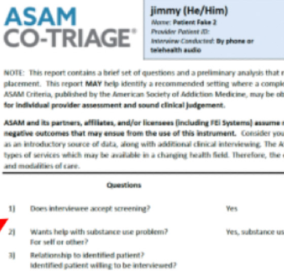 Digital ASAM CO-Triage & CONTINUUM Assessments